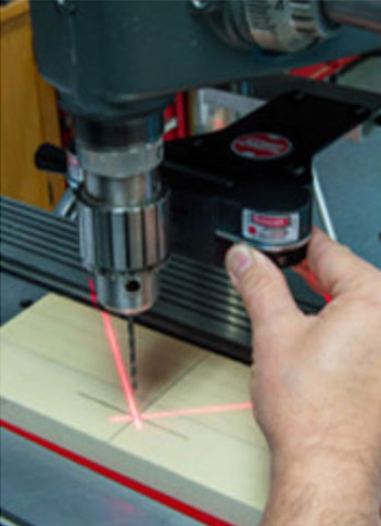 This Universal Drill Press Laser projects a thin set of cross-hairs onto your drill press table precisely where the drill bit will contact the work piece. It allows the user to quickly position and clamp the work piece in place, so that the hole is drilled exactly where needed. This eliminates the need to repeatedly lower the bit to the surface and align the tip of the bit to the desired hole location.