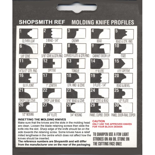 Some knives are designed to do a specific job like cutting glue joints, door and cabinet lips and three-bead moldings. Others, however, are described as combination cutters and are usually set to shape a portion of the the final profile.