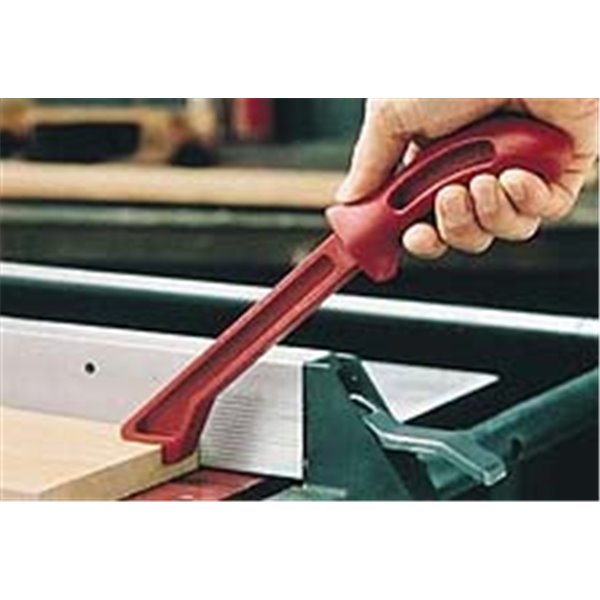 B: Push Block The push block is used to hold down and guide the stock. As you press down, forward, and to the side, the rubber pad grips the stock. The handle is tilted to help keep your hands out of the danger zone.